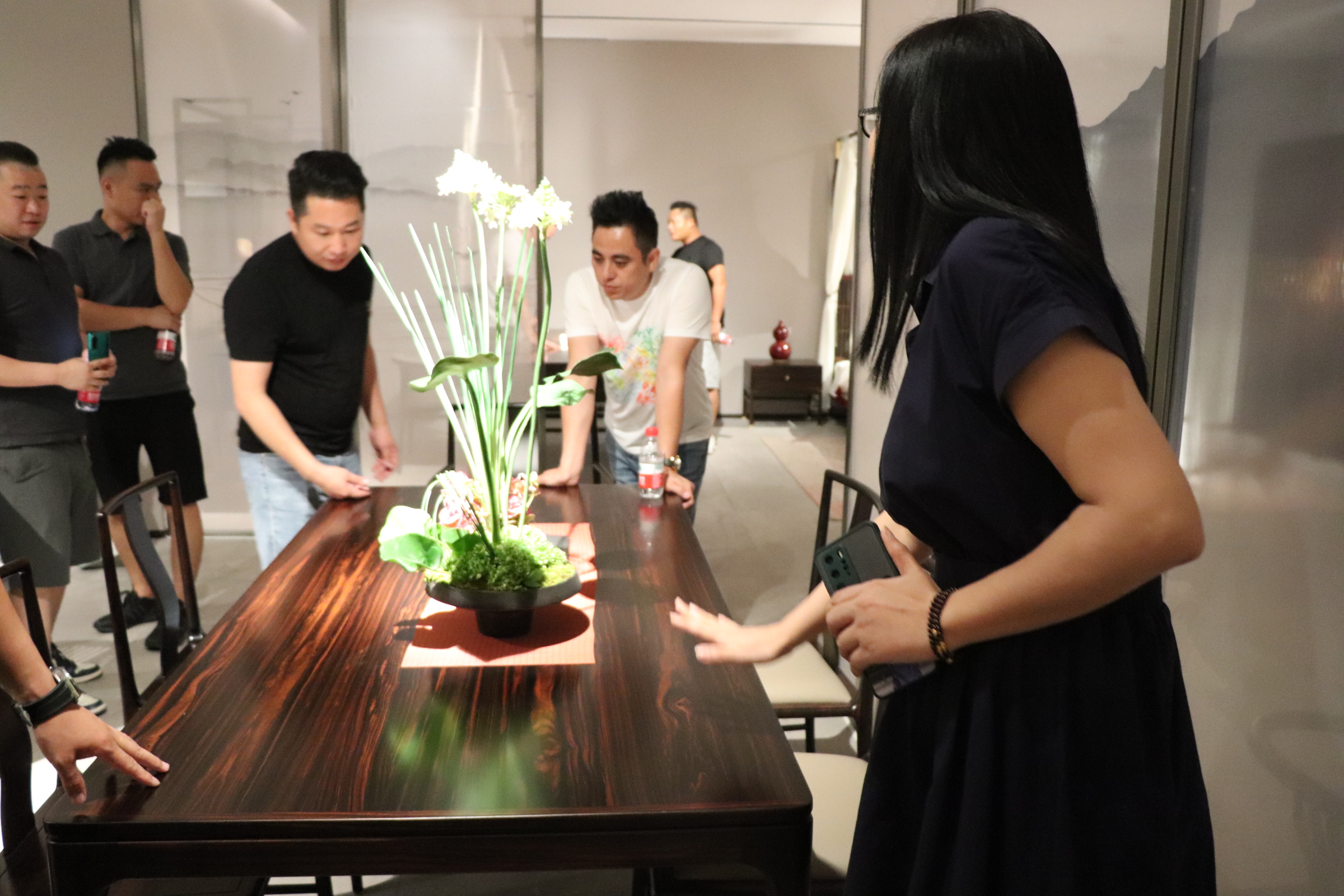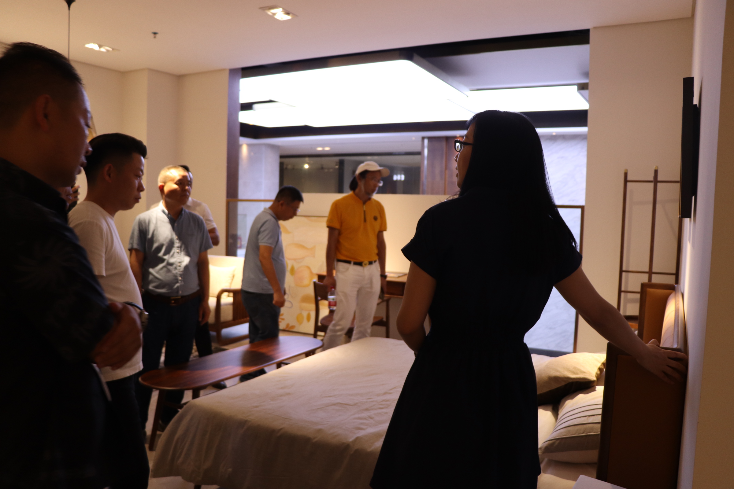 在簡單的歡(huān)迎儀式後,嘉賓們在工作人(rén)員的陪同下來到公司家居展廳,對91免费的各大原創家具係列產品進行了參觀。