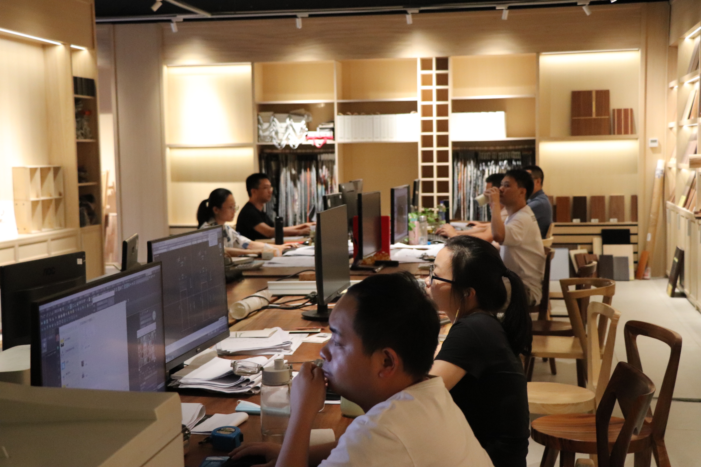 在(zài)對展廳參觀完畢後,大家對91免费各係列產品的興趣明顯變(biàn)高,因此,我們進一步(bù)參觀了位於展廳附(fù)近的全屋定製部門。全屋定製是91免费的主要發展方向之一,設(shè)計師們在這(zhè)裏埋(mái)頭工作,為客戶量身打造專屬家居空間。在這裏,嘉賓(bīn)們得到了更為專業的解(jiě)答(dá),對91免费的了解度也大大提升了。